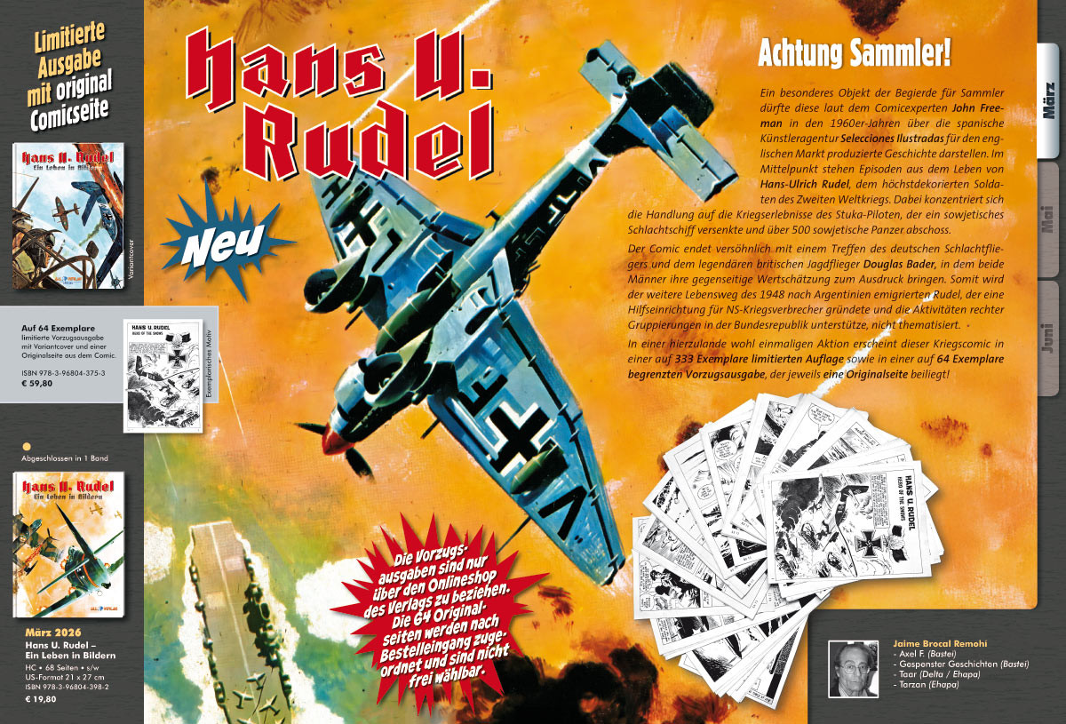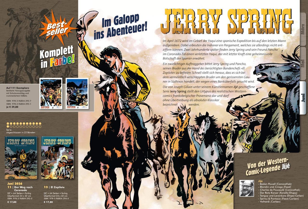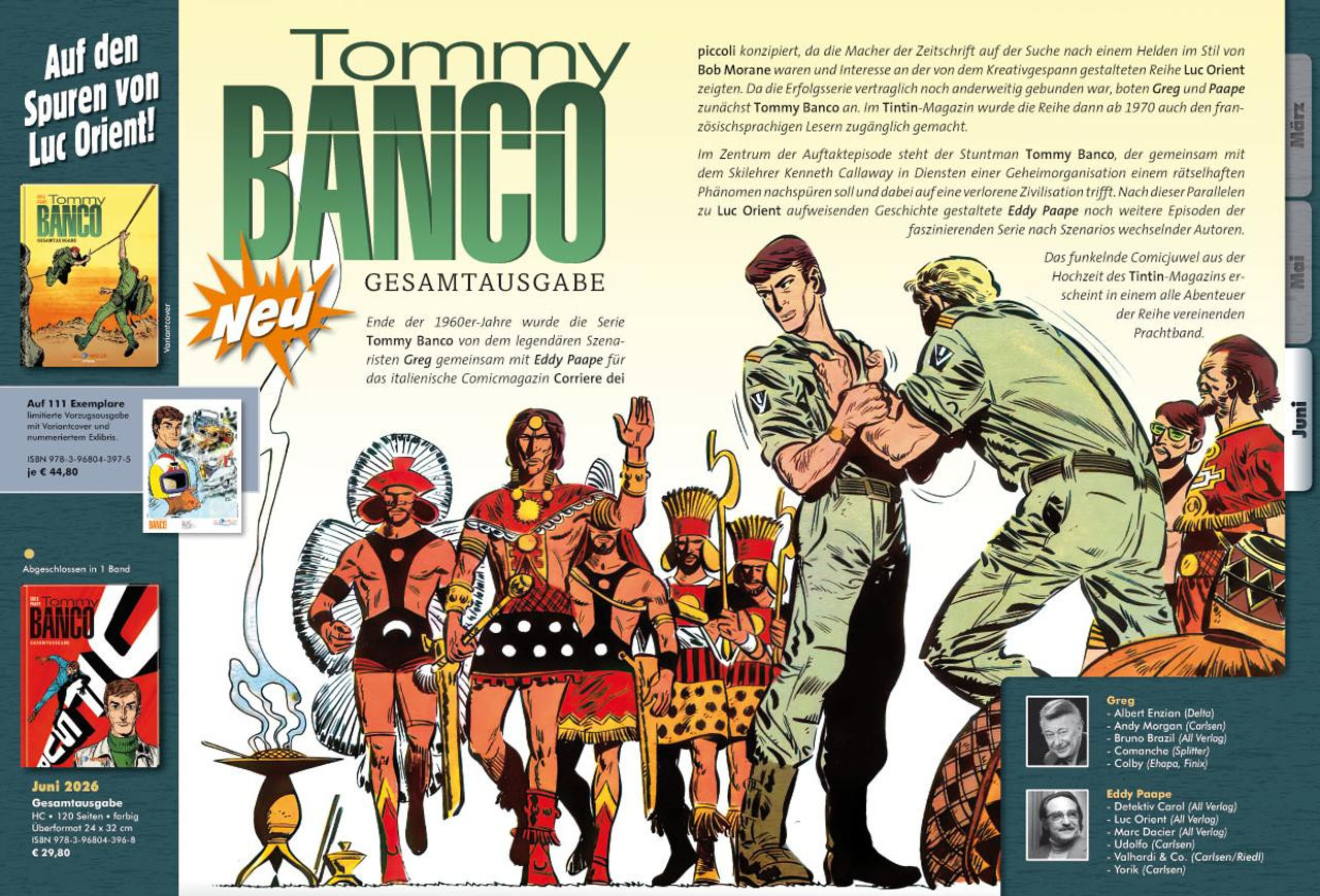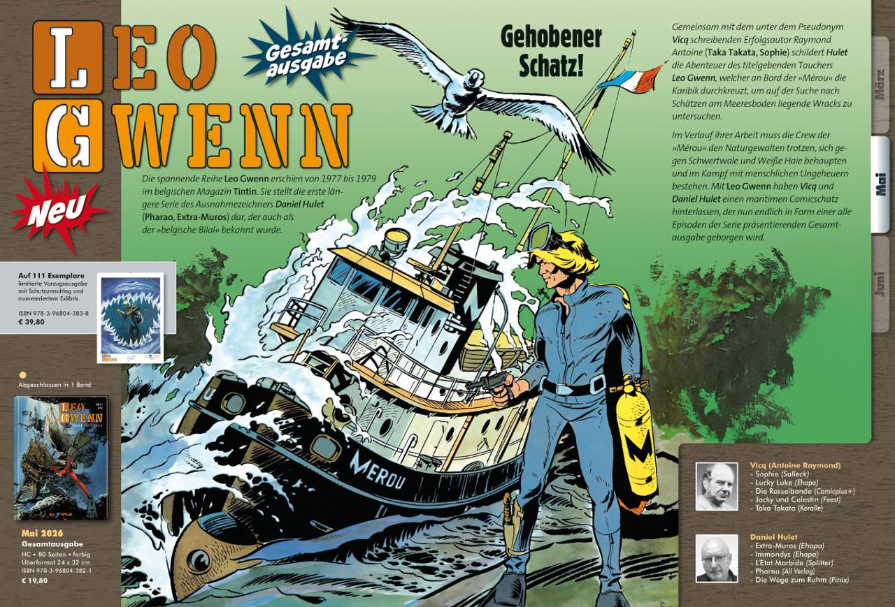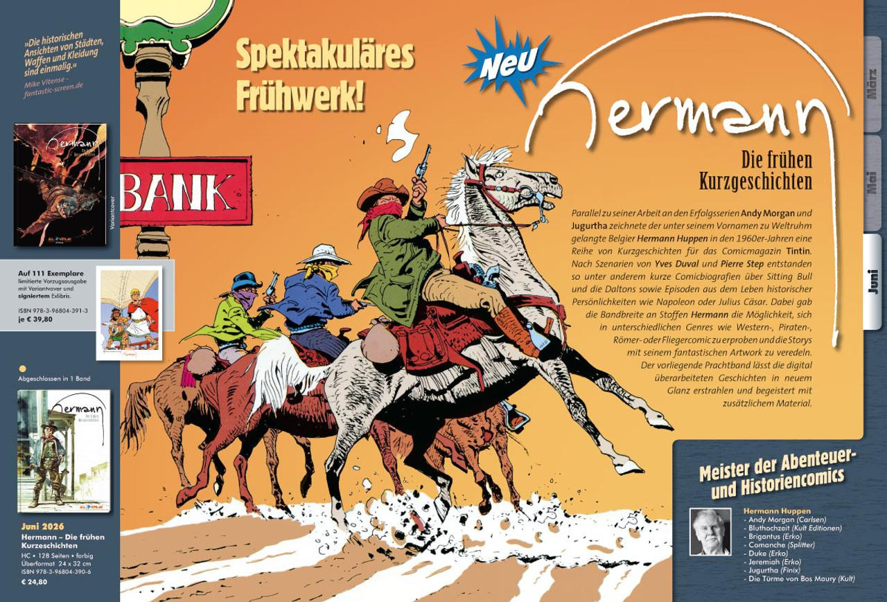 Vorab schonmal eine kleine Info: Diesmal sind 4 abgeschlossene Einzelbände bzw. Gesamtausgaben dabei. Wir starten 2 neue Reihen die am Ende 2 bzw. 3 Bände umfassen werden. Dazu kommen noch 4 Reihen die wir mit insgesamt 6 Bänden fortsetzen. Das macht insgesamt 12 Bücher + dem Start des Magazins im Juni.